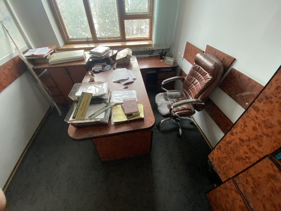Комплект меблів офісний б/в: стіл, тумба з полицями, шафа з полицями, вішак для одягу