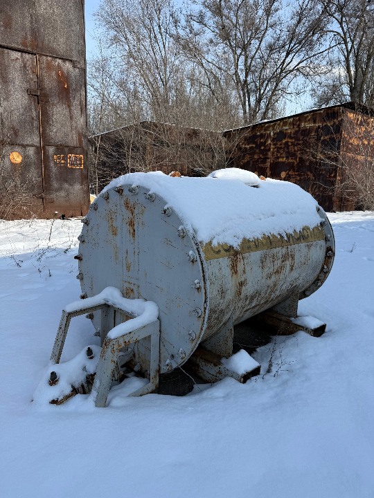Модель невідома, рік випуску невідомий, технічний стан невідомий, майно перебуває у стані, що потребує ретельної дефектоскопії (особливо внутрішнього захисного шару) перед подальшим використанням, зовнішній вигляд свідчить про низький рівень поточного технічного обслуговування. зберігається на промисловій ділянці.
