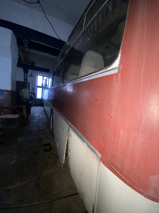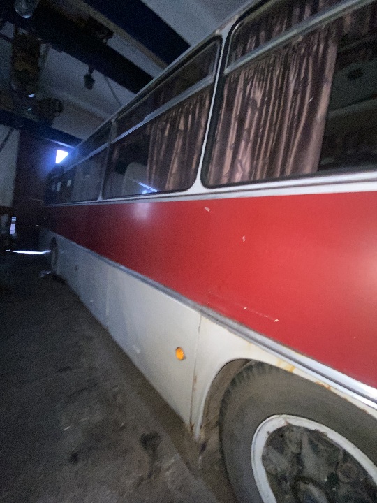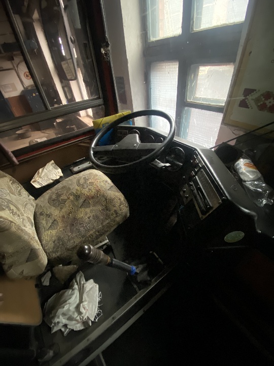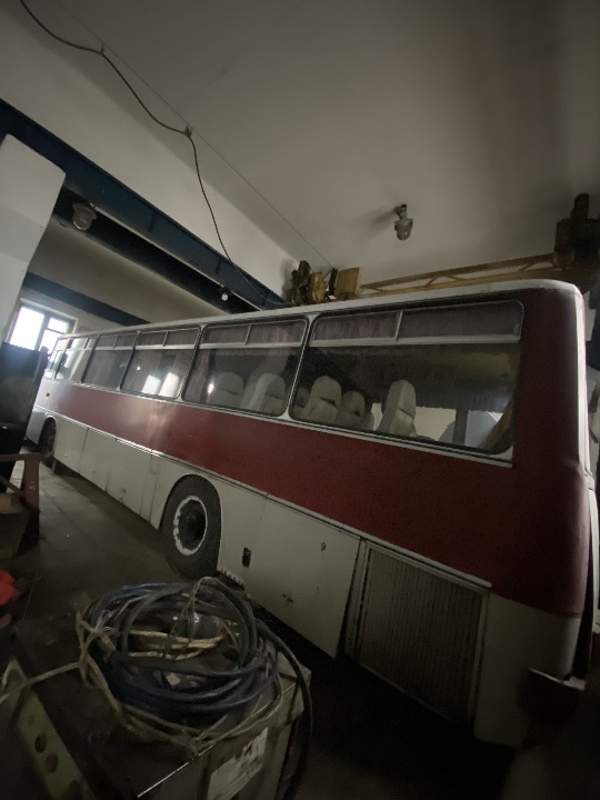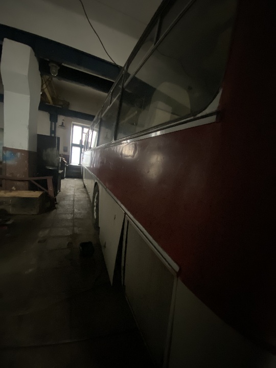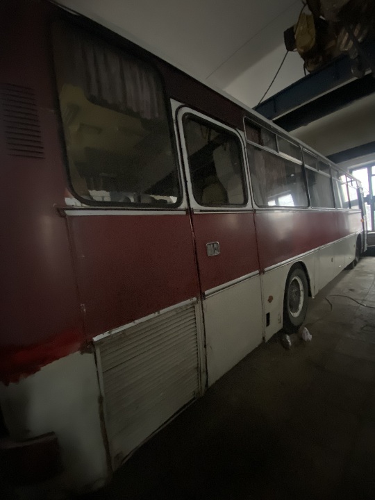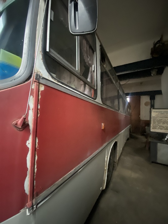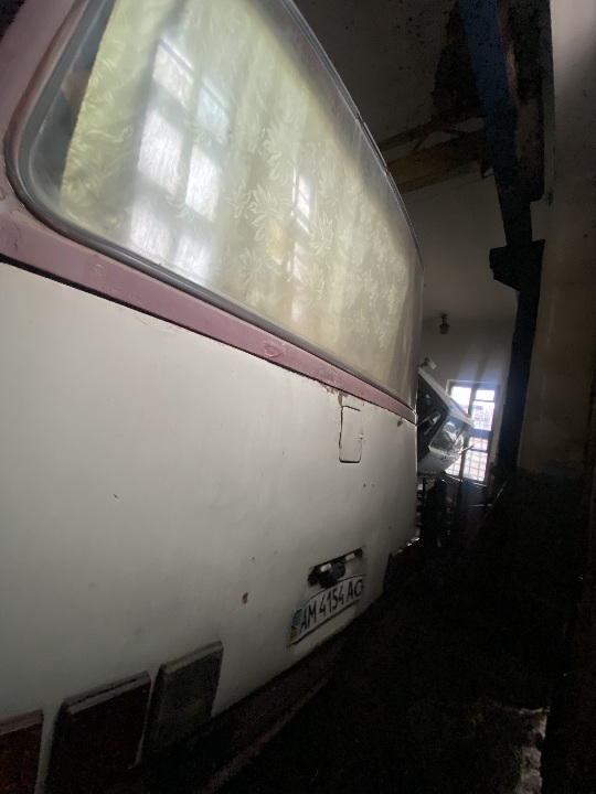 Автобус знаходиться не на ходу, в комплектному стані ( наявні сліди підтікання мастила на двигуні та коробці, ремонту потребує компресор),для свого строку автомобіль має задовільний вигляд. Техпаспорт та ключі наявні, одометр несправний, пробіг встановити неможливо.