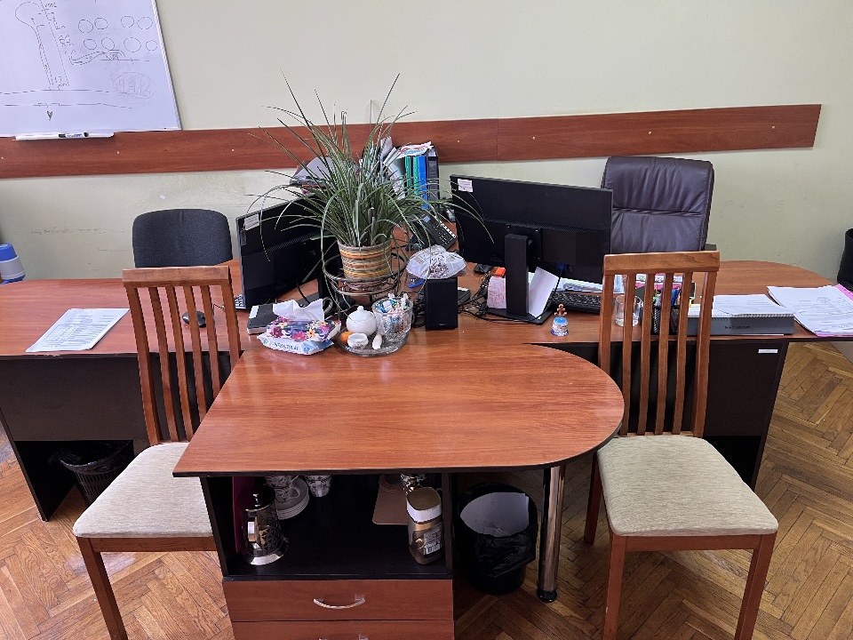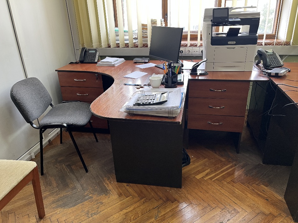 Столи офісні з тумбами, коричневого кольору 4 од, б/в