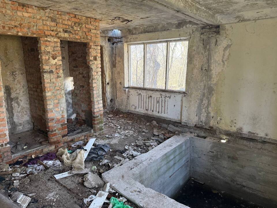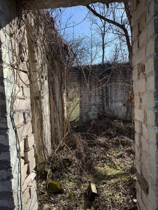 - Будівля літ. Б: рік спорудження: 1960, площа основи (забудови): 68,6 кв.м., висота: 2,80 м, об’єм: 192 куб.м, фундамент – бетонний, стіни – дерев’яні, обкладені цеглою, покрівля будівлі – відсутня, перекриття – залізобетонні плити, підлога – дошки 50% відсутнє, сходи – відсутні. Інженерні обладнання: електрика відсутня, водопровід відсутній, каналізація відсутня, газопровід відсутній, опалення відсутнє;