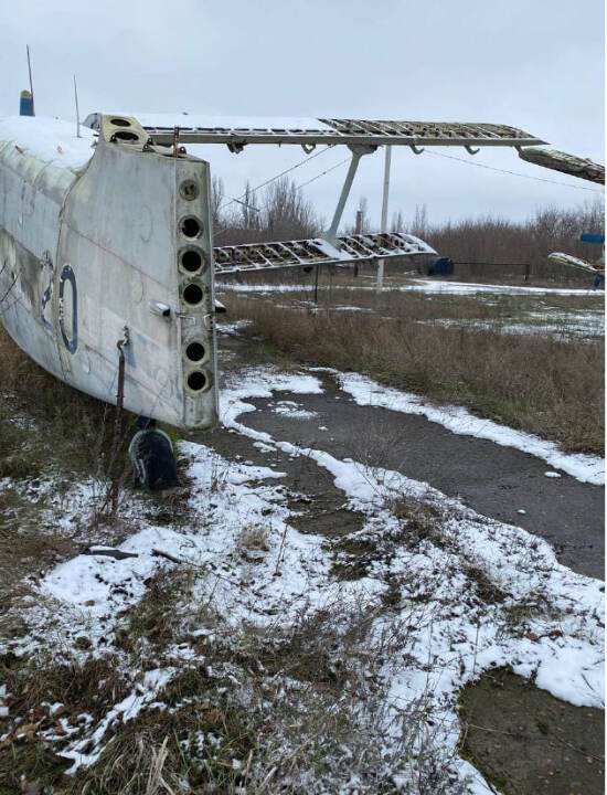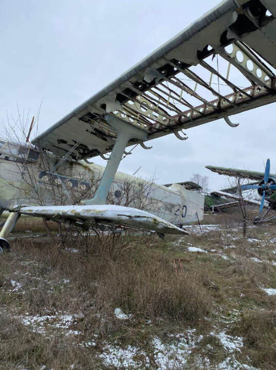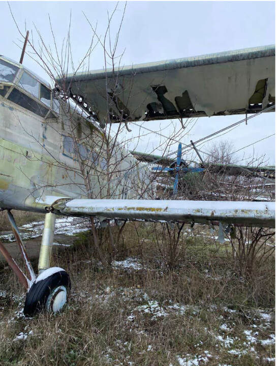 Літак Ан-2, інвентарний № 19, заводський № 23554. Марка та модель: Ан-2 — радянський одномоторний багатоцільовий літак, що використовувався для сільськогосподарських робіт, перевезення вантажів, а також для транспортних та пасажирських перевезень. Літак Ан-2 зазвичай оснащений двигуном АШ-62 потужністю 1,100 к.с., обсяг двигуна складає 62 літри (6,2 л) для кожного з циліндрів (24 циліндри загалом). Однак цей конкретний екземпляр без мотора, що означає, що він потребує заміни двигуна для подальшого використання. Рік випуску: не встановлено Вид пального: авіаційне паливо типу ТС-1 або М-100. Пробіг / наліт: невідомо (дані відсутні) Потреба в ремонті: Зважаючи на відсутність мотора та пошкодження, цей літак потребує повного ремонту, включаючи заміну двигуна, огляд конструкції та перевірку всіх систем. Колір: сірий