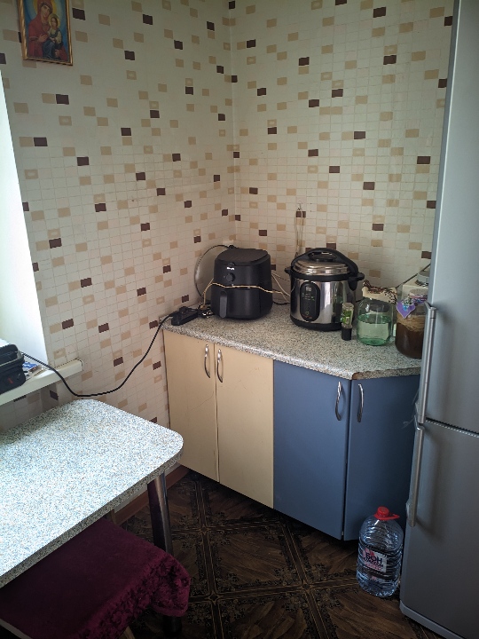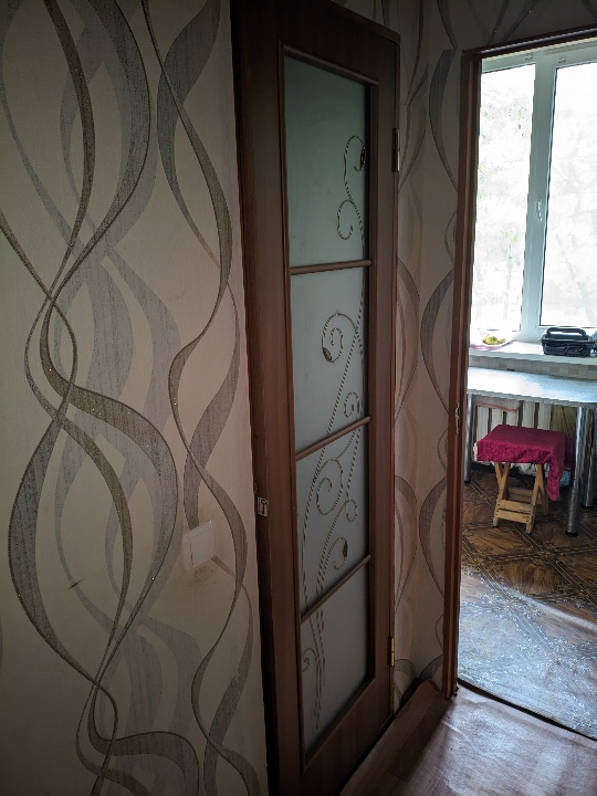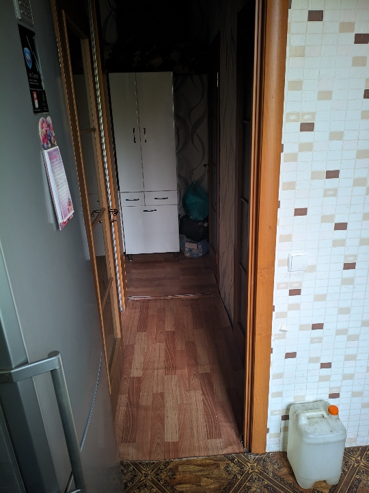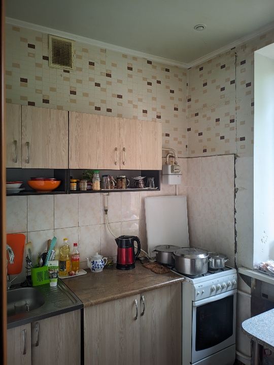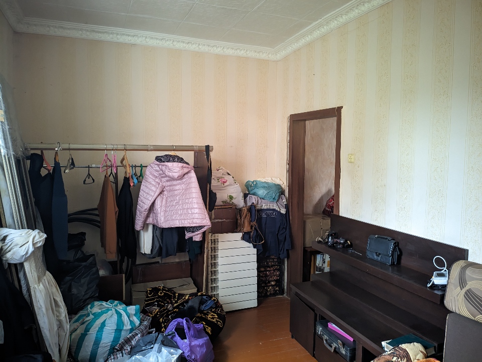Приватна власність. 1/2 частина трикімнатної квартири загальною площею 61.7 м.кв. Квартира в задовільному стані. Ремонт відсутній. Знаходиться квартира на третьому поверсі трьоповерхового будинку. Зареєстровано троє повнолітніх осіб.