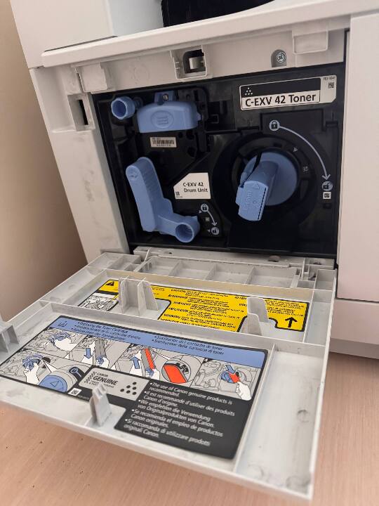 Принтер, виробник CANON image RUNNER, 2206 IF F193390, №21 2ESO1918, б/в. Принтер перебуває у доброму стані та використовується власником, однак перевірити справність не виявилось можливим через відсутність світла.