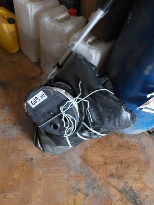 гумовий човен з маркуванням «GRIF BOAT» Модель GL-240. До якого прив`язана мотузка, 2 весла та ножний насос. Човен бувший у використанні, темно-зеленого кольору.