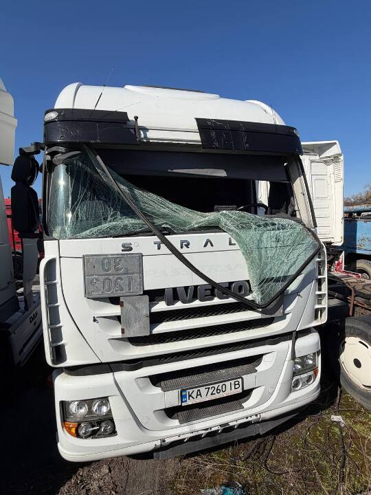 Транспортний засіб вантажний - сідловий тягач, марка ТЗ: IVECO, модель ТЗ: STRALIS, категорія ТЗ: вантажний, рік виробництва ТЗ: 2010, VIN: WJMM1VSH404390316, номер шасі: WJMM1VSH404390316, номерний знак: KA7260IB, колір ТЗ: білий. КТЗ має пошкодження що виникли внаслідок експлуатації, а саме: наявні подряпини, сколи та потертості по всьому периметру деталей кузова КТЗ. На колісних дисках наявні подряпини, корозія, потертості та відшарування верхніх шарів покриття. Наявні пошкодження на панелі боковини з лівої сторони, панель даху, решітка радіатора, двері з лівої сторони. Скло пошкоджене. АКБ відсутня. Салон та крісла авто забруднені, наявні подряпини та потертості. Ключі та свідоцтво про реєстрацію відсутні, перевірити справність не виявилось можливим.