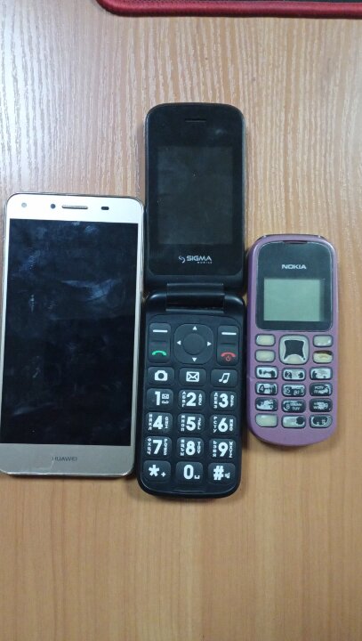 три мобільні телефони марки: «Nokia-1280» IMEI: 358636/04/760545/5, без а/б; «Sigma Comfort 50» IME11: 3531850855622355, IME2: 353185085562363, без а/б; «Huawei-CUN-U29» IME11: 865889039091889 IME2: 865889039147798, без а/б. скло та корпус мають потертості, подряпини. Б/В. Працездатність невідома, стан незадовільний. Конфіскація майна: за ухвалою Казанківського районного суду № 478/462/25 виданої Казанківським районним судом від 24.04.2025