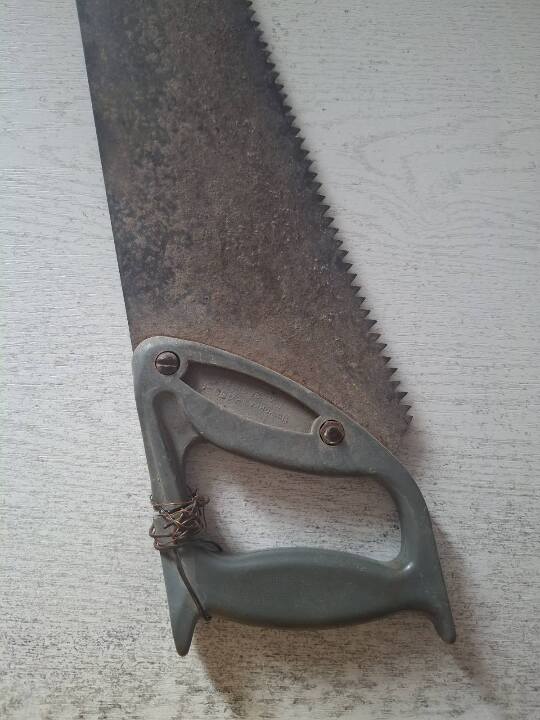 ручна пилка з платиковою ручкою сірого кольору, яка скріплена проволокою жовтого кольору. б/в, майно конфісковане за рішенням Шумського районного суду, №609/109/25 від 23.04.2025