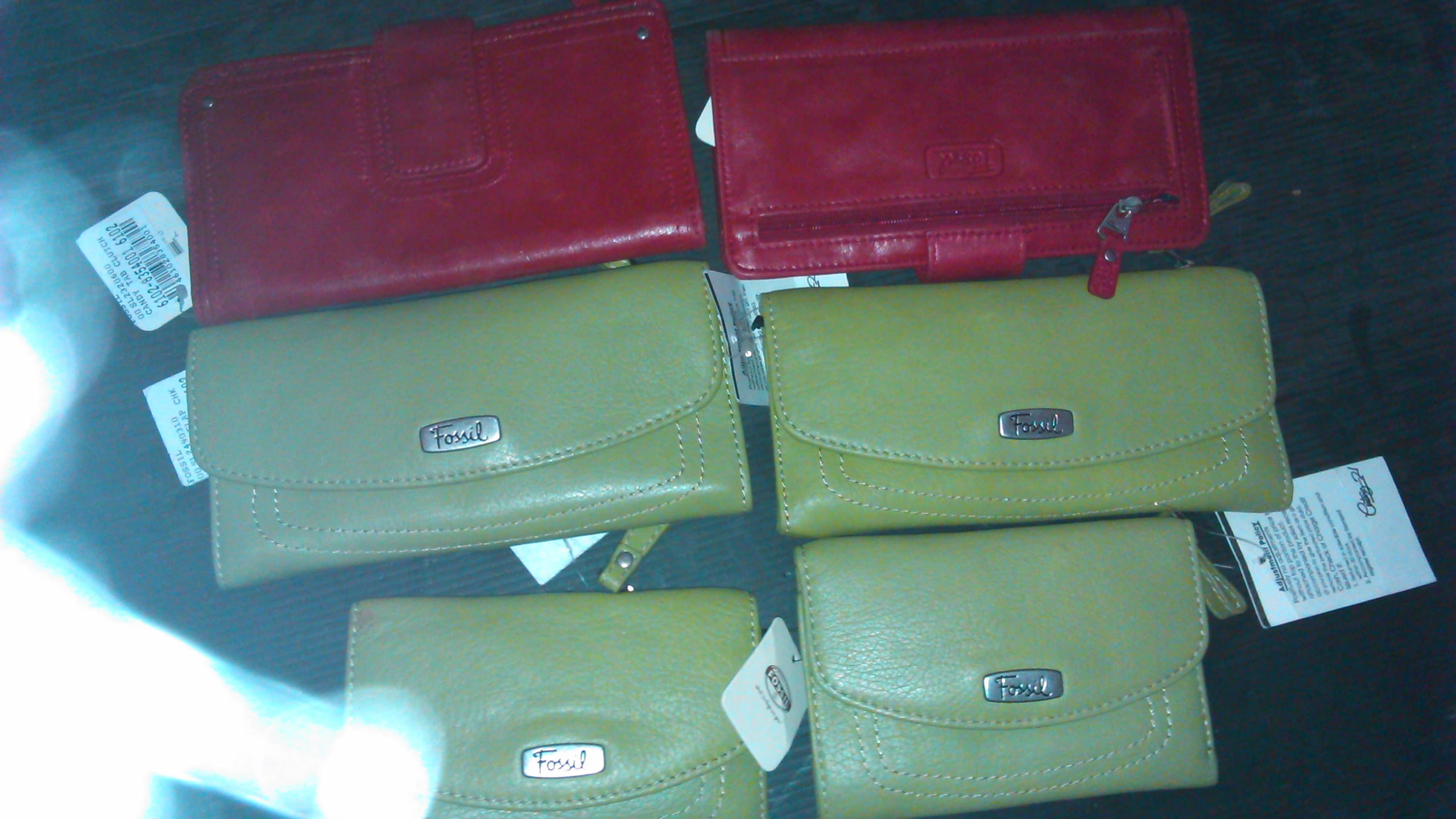 Портмоне жіноче, шкіряне, різних моделей і кольорів, т.м. Fossil, країна виробництва та виробник невідомі.( 09524; 09532) - 6 шт