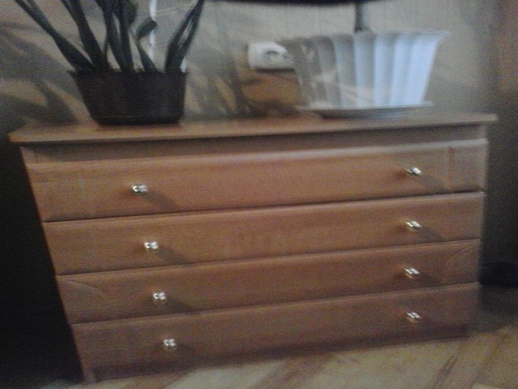 Комод світло-бежевого кольору з шухлядами з золотистими ручками