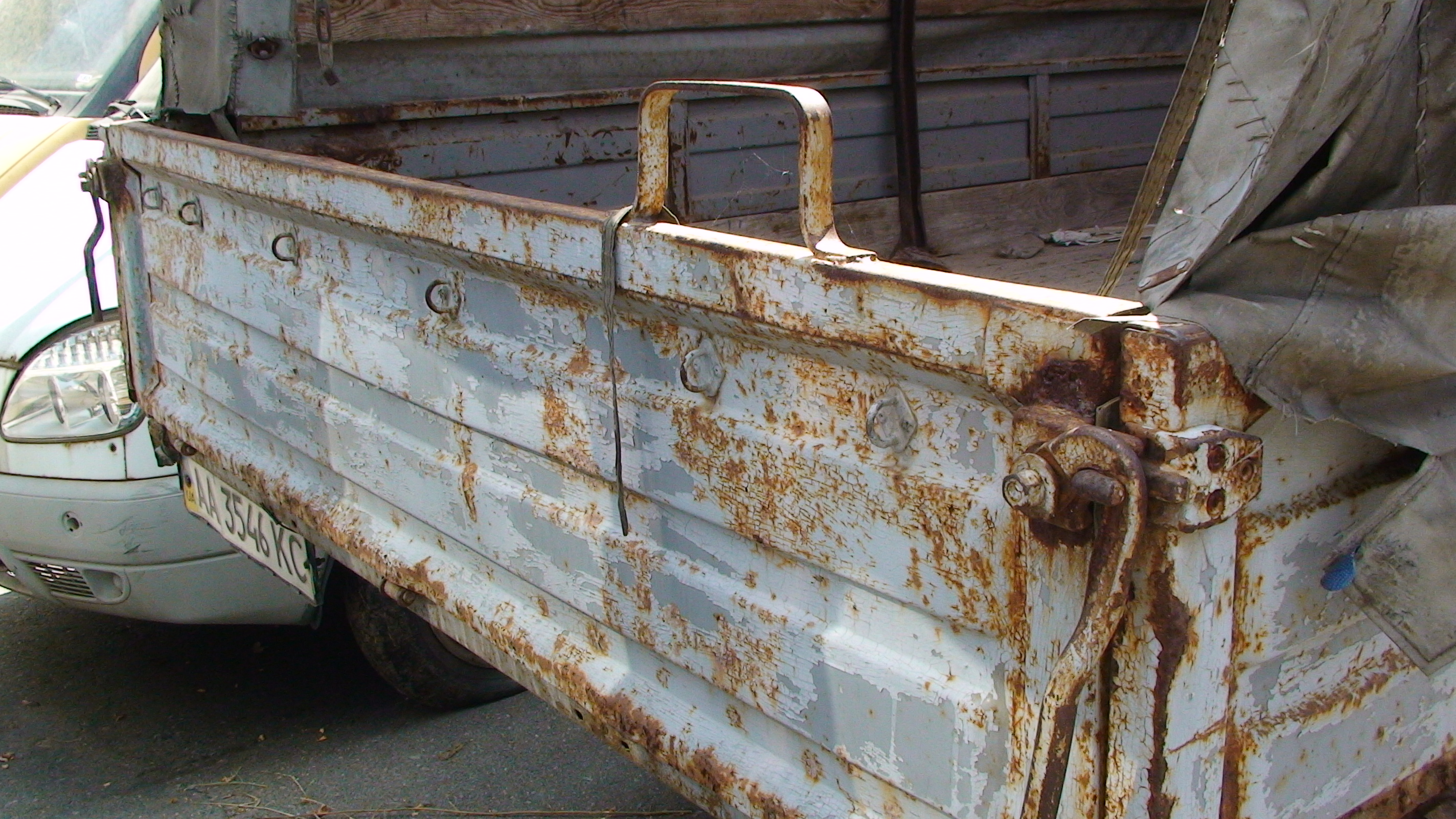По всьому периметру кузова автомобіля наявні пошкодження лакофарбного покриття у вигляді вм'ятин, відколів, корозії та пордряпин. Відсутній АКБ, пошкоджено скло, по всьому салону плями, подряпини, потертості та подряпини, пошкоджено кріплення декоративної накладки під панеллю приладів, пошкоджено задні фонарі, передні блок-фари мають потертосні пошкоджено тент вантажної платформи, відсутня кришка паливного баку. КТЗ має пошкодження кузову: поріг кузову лівий та правий, бризговик переднього крила лівий та правий, щит передка, панель передка, бризговик облицювання радіатору, стійка боковини передня ліва та права, арка боковини права та ліва, панель боковини ліва та права, двері передні ліві та праві, крило незйомне переднє ліве та праве, капот. КТЗ фактично не на ходу.