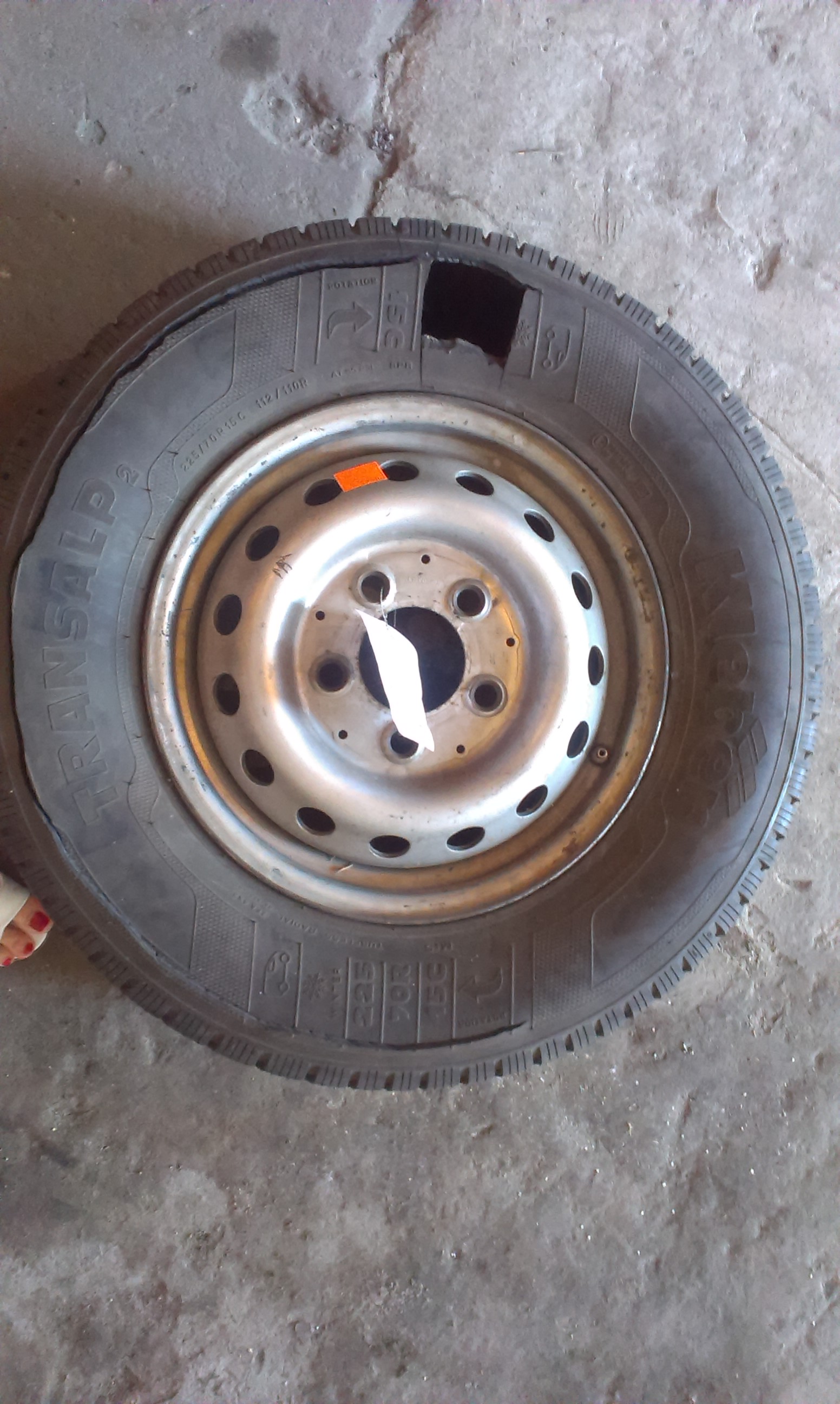 Колесо б/в, із залізним диском, шина "Kleber" , розмір 225/70 R15C. Шина розрізана, без камери.