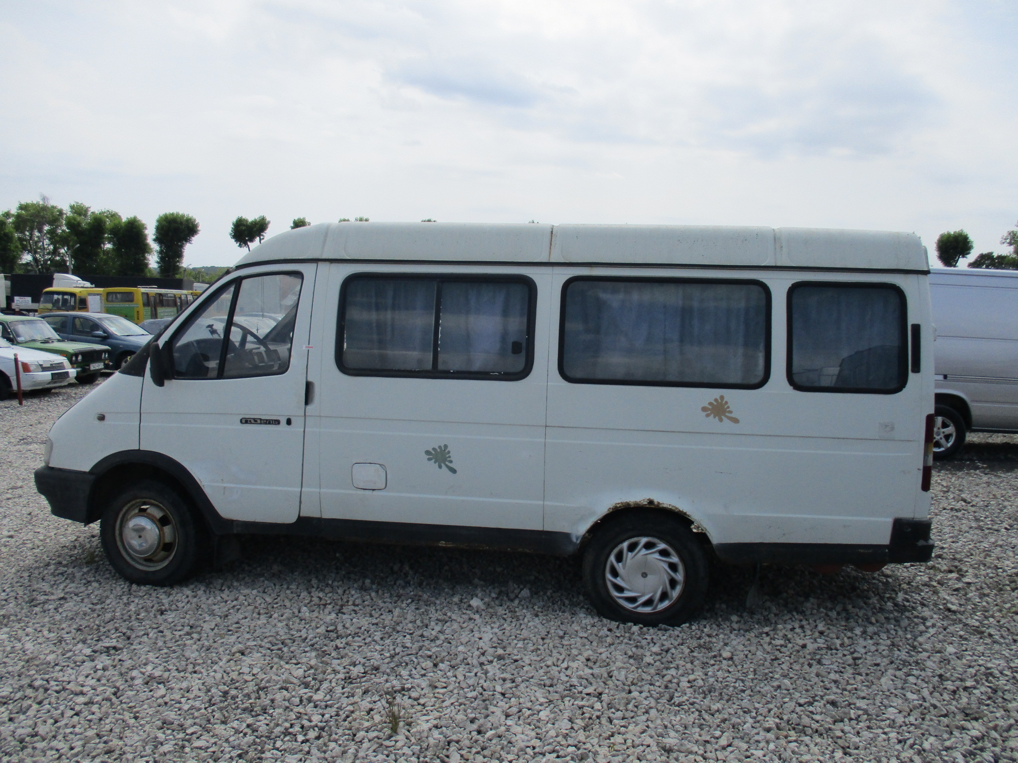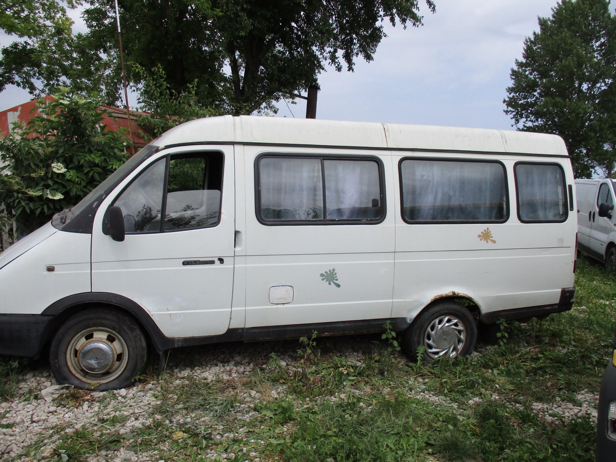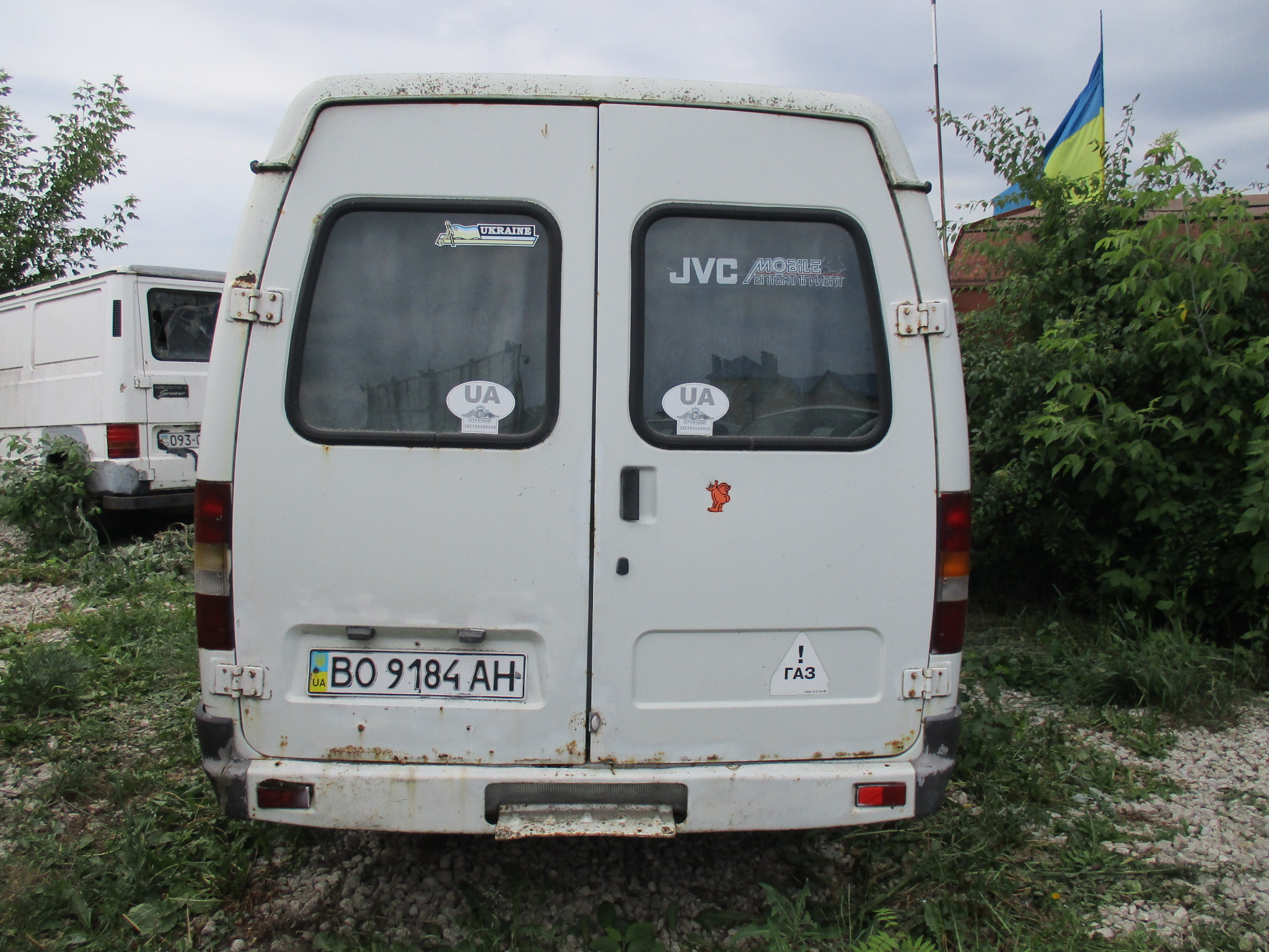 Мікроавтобус-D, ГАЗ 32213 224, ДНЗ ВО9184АН, 2000 р.в., №кузова 270500Y0038385, №двигуна 421500Y0706658, без ключів і документів, салон закритий. Автомобіль білого кольору, спостерігається корозія кузова, на передньому капоті наявна корозія і вм’ятина, двері автомобіля також покриті корозією, тріснуте пластмасове продовження заднього бампера, спущені усі чотири колеса автомобіля, бокові та задні вікна автомобіля закриті шторами , підлога автомобіля встелена лінолеумом коричневого кольору, передні диски автомобіля вкриті корозією, сидіння автомобіля вкриті тканиною чорного кольору, у лівому задньому крилі наявний отвір, відсутній правий двірник.