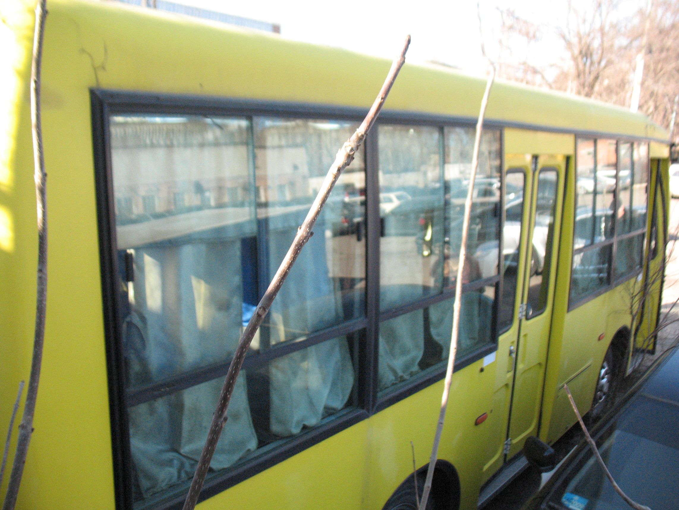 сітка радіатора знаходиться в салоні атобуса, салон запилений, по всьому кузову наявні тріщини лакофарбового покриття та сліди іржі, лобове скло має декілька тріщин, працездатність транспортного засобу не визначена