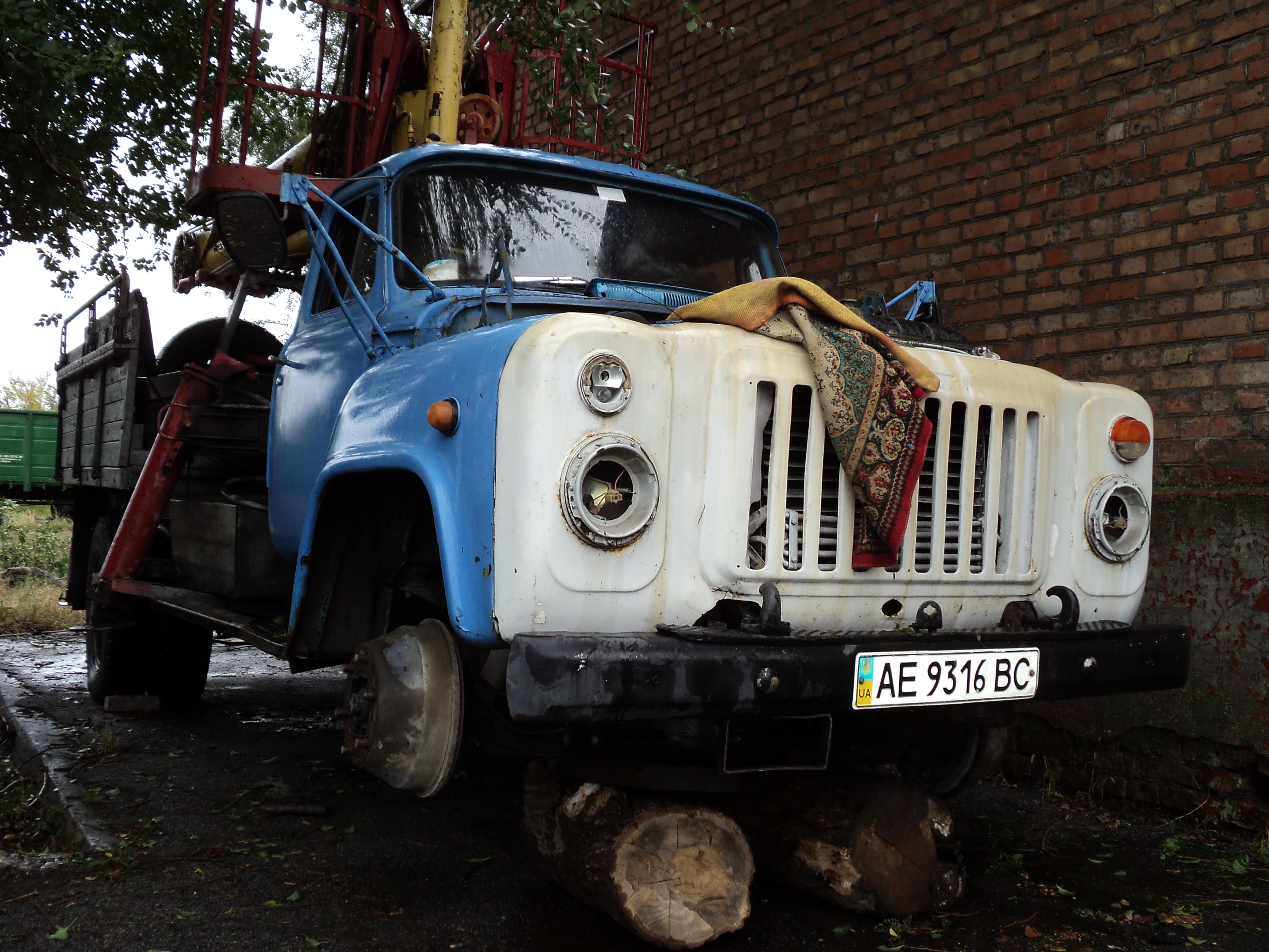 автомобіль марки ГАЗ модель 53А, тип ТЗ автопідйомник-С, колір блакитний, об"єм двигуна 4250 см. куб., реєстраційний номер АЕ9316ВС, 1969 р.в., шасі, кузов ХТН531200J1198796, двигун 5312554. ТЗ в не робочому стані, двигун розукомплектований, пошкодження лакофарбового покриття на кабіні та несучій рамі у вигляді корозії